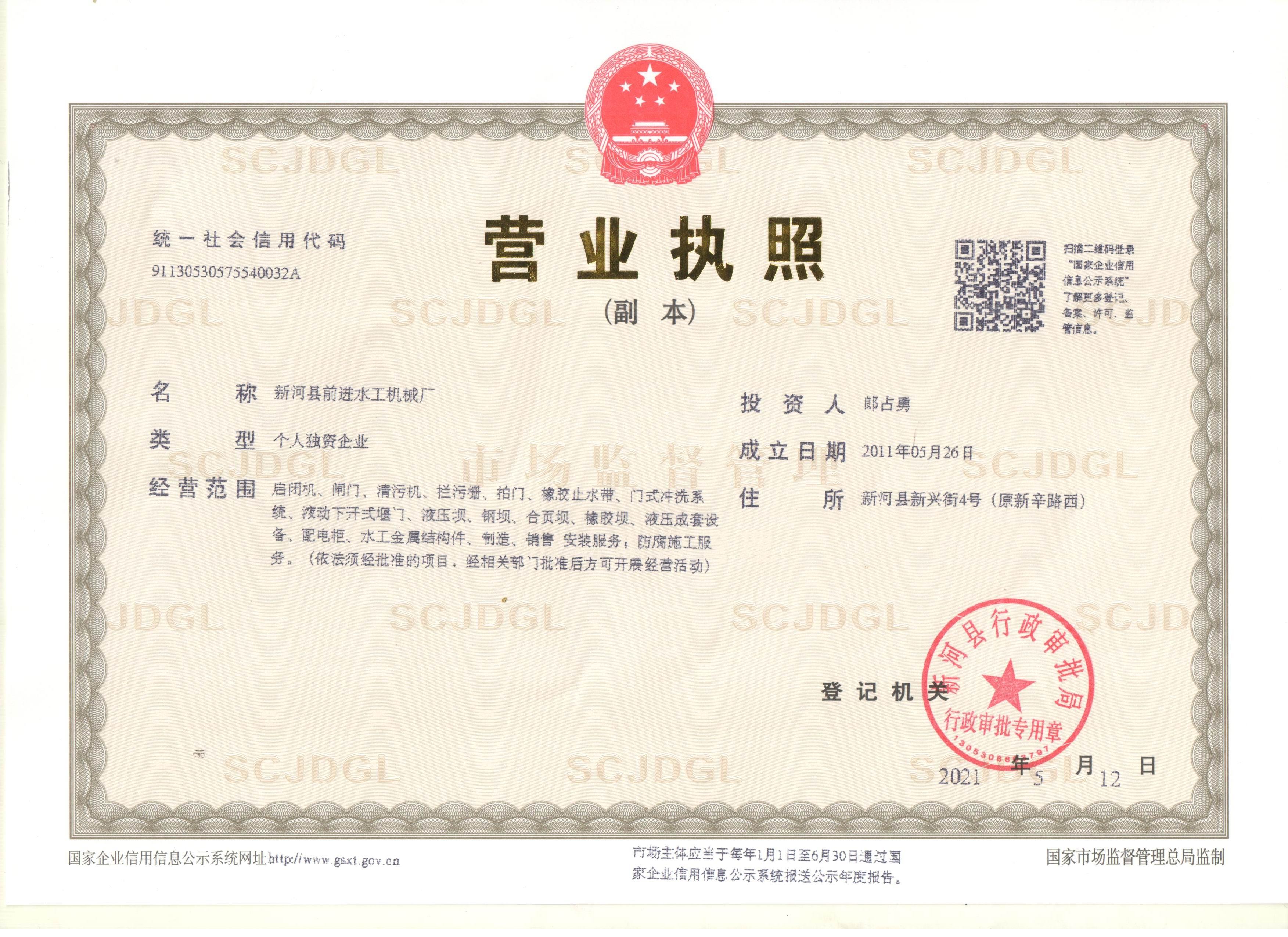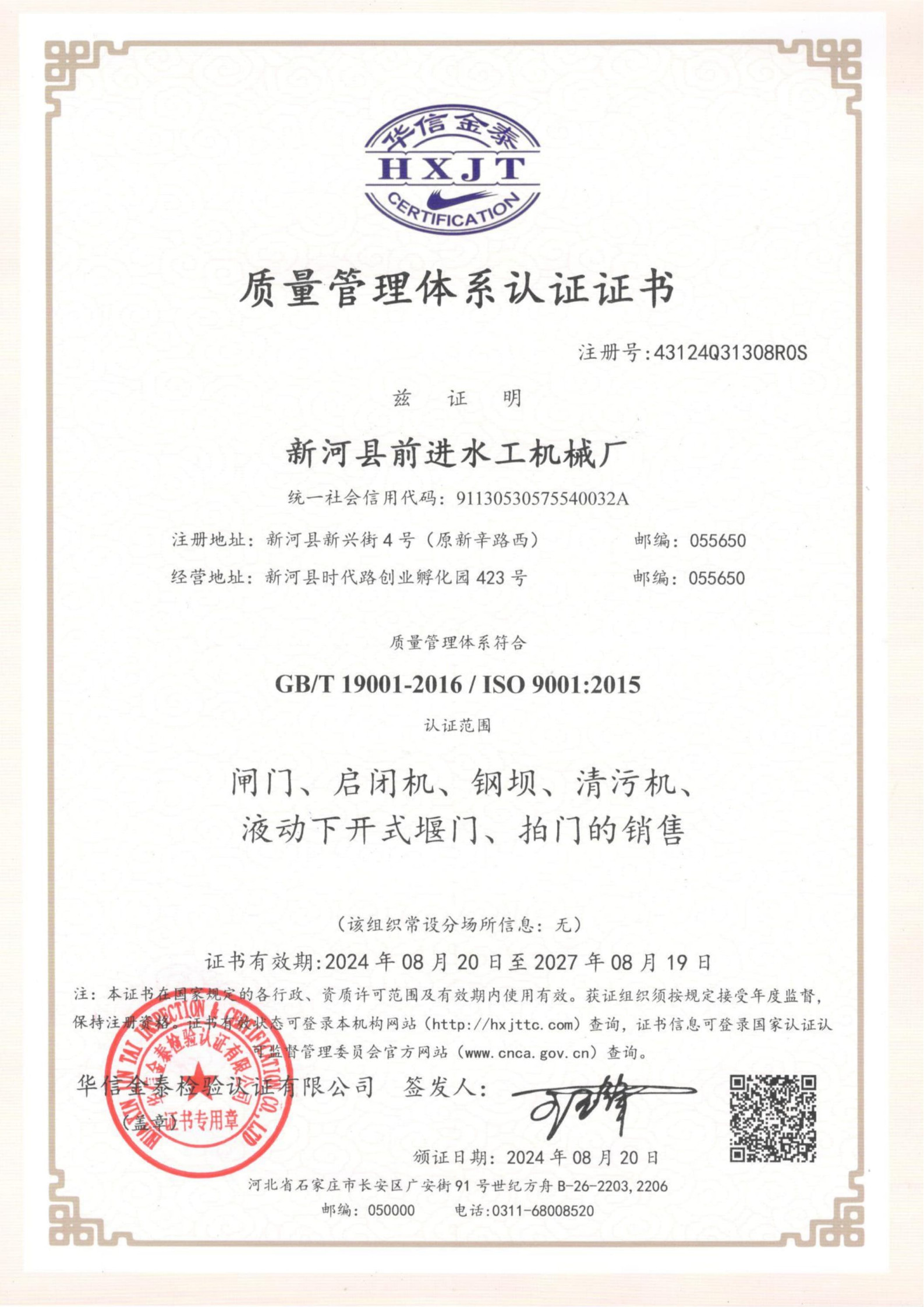 新河縣前進水工機械廠是一家專門從事水利工程設備研發(fā)生產(chǎn)的廠家,現(xiàn)有員工228人,各類高、中級專業(yè)工程技術人員近30人,技術生產(chǎn)工人180多人。公司占地面積14674平方米。公司擁有車、鉗、刨、銑、冷作、鈑金、鑄造等,工種齊全,加工能力和技術力量雄厚,并具備理化測試手段與儀器設備。前進水工專注景觀閘門,鋼壩,合頁壩,液壓升降壩,液壓閘門,臥倒門,一字門,人字門,液壓啟閉機,卷揚啟閉機,螺桿啟閉機,清污機,除污機,閘門,拍門等設備的研發(fā)與生產(chǎn),是新河水利工程產(chǎn)品行業(yè)的領跑者,不僅在同行業(yè)群中揭起了一次又一次的技術革新,更為水利工程企業(yè)提供了更高更大的選擇平臺。